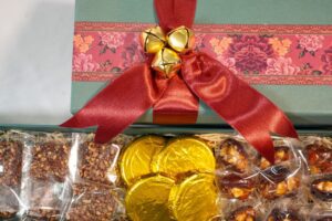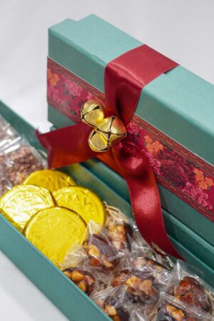 Wrapped in elegance with a floral-accented lid and satin ribbon, this box is the perfect pick for festive gifting or thoughtful surprises. A tasteful mix of nutty crunch and sweet indulgence, curated to delight every bite.