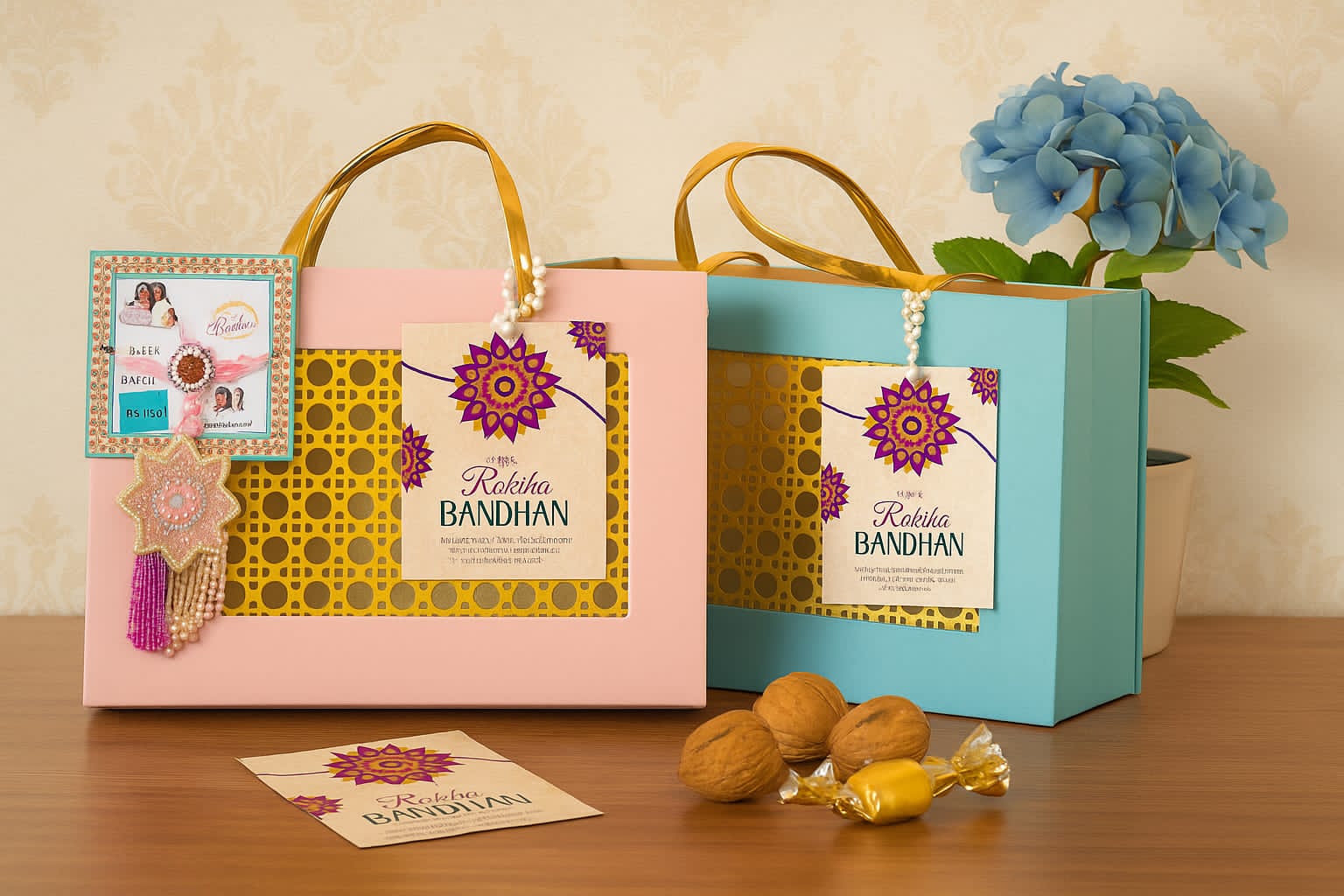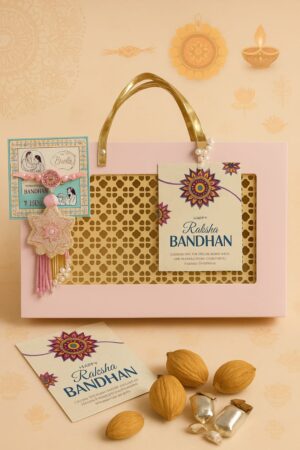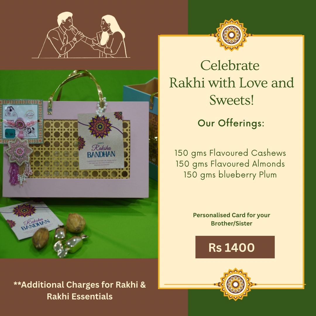 An elegant hamper loaded with 150g flavoured cashews, 150g almonds, and 150g blueberry plums. A complete Rakhi gift that blends health and indulgence in a stylish keepsake box.